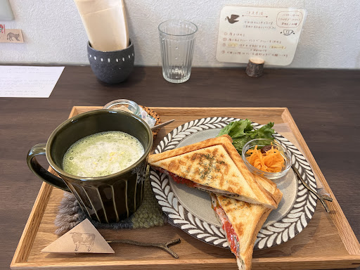 Read moreずっと前から気になっていてついにいけました! 席を先に取り自分でレジに注文をしに行く先払い制です。女性の店員の方が飲み物を出すタイミングなどを聞いてくれてとても丁寧な接客でした。 今回私は日替わりカレーとチーズケーキ、カフェオーレを注文しました。 日替わりカレーは写真にある通りの見た目で味がすごく美味しかったです!甘めのカレーなのにスパイス?のような風味もあっておすすめです♪チーズケーキは上の部分は滑らかな口当たりで美味しく、下のクッキー部分はバターをかなり感じれる濃厚な味です。甘すぎるのが心配な人はコーヒーなどと一緒に食べると美味しいと思います! 店内はすごく綺麗で掃除がしっかりされており、ハンドメイドらしきかわいい小物が販売されています。そして何より店内も料理も全てが可愛くてすごく楽しめました。 また...