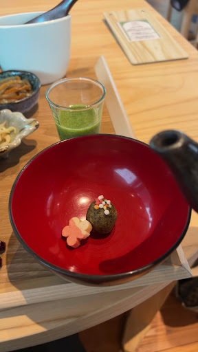 Read more江坂駅から歩いて20分くらいと公共交通機関を利用する方にはそこまで遠くないとおもいます。 外観やテラスはとても良い雰囲気で小さな子連れママさん達が楽しそうでした。 私たちは犬連れと言うこともあり犬連れ専用テラスへ。ウッドデッキやテーブル、トイレは綺麗でした。食事のおにぎりとサラダでしたが サラダは美味しかったです。おにぎりは冷たくご飯固めで風が少し肌寒い日だったので冷たいおにぎりはどうなんでしょうか。 犬連れのテラスはあちらです。と行き方?を伝えるだけでオーダーの仕方などはなく着席しても誰もこないのでレジカウンターで注文。食事を待ってる間に犬連れの方への注意事項を持ってこられました。そこで知ったのが犬オムツ必須、レジに書いてあった一枚100円のオムツを購入。店員さんは4人ほどいましたが楽しそうに店員さん同士で笑顔でお喋りに夢中でした。 犬用テラスからはバーが丸見えなので大きな口でつまみ食いしている女性店員さんもおられました。そんな手で料理を提供しているのでしょうか。お会計を済ませ帰る時バーからは丸見えバーの扉も30センチほど空いているのにありがとうございました。の声も聞こえない。そりゃそーですよね。バーの方も楽しそうにおしゃべりされてるからお客さんが帰るのも気づかないでしょう。とても素敵なお店なのに残念なことが多かったのでリピはありません。ちなみに私たちが入店してまもなくもう1組犬連れさんがこられましたがなにも頼まず店員さんもこられない間に帰られました。サービス業なのでもう少し目配り気配りできる指導をしたほうが良いですね。 あとネットに出ている釜だきご飯?はもうやっ...