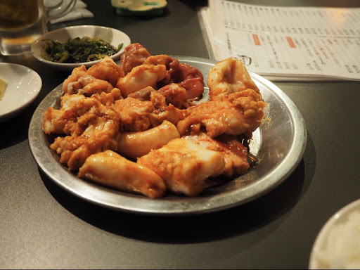 Read more大将との会話も面白いですが、味も満足できます。 ホルモンも勿論美味しいですが、個人的には赤身系の肉が好きで良く食べてます。 品数もたくさんあるので、予習して行っても良いですが、その日のおすすめを聞いてみるのも良いと思います。 一人で行っても良いですが、多人数でも受け入れて貰えるお店です。 換気は出来てはいますが、炭で焼くので多少は服に臭いがついてしまいますので、お気に入りの服を着ていく場合や、臭いが気になる人は袋を持参して椅子の下に入れれば良いと思います。