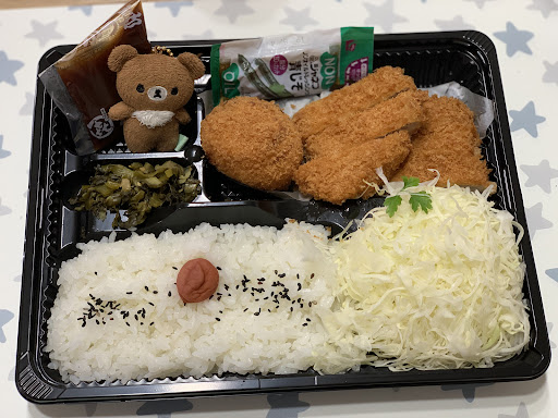 早速注文。 鹿児島産豚?のお肉のお膳、それとメンチカツ、フライドポテト🍟を注文して、数分待って、メンチカツがきました。 メンチカツは、温かくて、衣がサクッとしており、フライドポテトは、ちょうど良い塩加減で味付がしてあり、美味しかったです。 その後に、お膳がきましたが、まずビックリしたのが、お肉の厚さ! お肉は、4種類あるみたいですが、この日は、2種類でした。 お肉を食べる前に、メニュー表に書いてあるお肉の楽しみ方が書いてあり、それを読んでから食べた方が、楽しめると思います。 お肉を食べると、脂の甘みと、衣のサクサク感がしてたまらなく美味しいです!! キャベツ🥬、しじみ汁、漬け物が美味しかったのですが、キャベツの量が多くお肉に厚みがあるので4つも食べると、キャベツを全部は無理そうでした。 (女性で少食の人だと、ボリュームあるお膳は、お友達と分けた方か良いかな?と思います🤔 男性であれば、全部食べれそうですが、年齢によって食が細くなってる人には、難しいかな?)