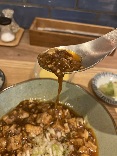 Looks like a high end Chinese izakaya, and they have lunch menu which doesn't even reach 1000 yen. The lunch set comes with rice, soup 2 small side dishes and a dessert. I ordered their lunch mapo tofu set for 850 yen. If you feel extra special they have dishes as much as 3500 yen like the shark's fin soup. The mapo tofu dish felt a little more on the tingling spice rather than actual hot spice. What's weird though is that their small soup (around half of a cup) felt the same way. It looks like a good place to drink and be cozy on the counter but for now with the state of emergency that's not gonna...