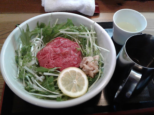 The place is a 10 min walk from the yamada station and not much is around in the peaceful neighbourhood. Is it worth it? Yes. Clear broth with a hint of lemon is very refreshing and goes well with the matsuzaka beef, that's tender and melt away in your mouth meat. Once served, you pour the hot soup in the tin can into your ramen bowl, and the rare beef is cooked instantly. All the topping plays a great part in a refreshing and very flavourful ramen that you'll finish the bowl very quickly including the soup. Not heavy on your stomach, so you might want to do a big size if you want to eat a...