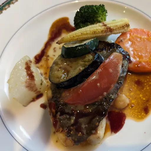 ほどよく味つけされたロースト野菜が香りよく、フィレ肉のステーキは柔らかくて赤ワインがすすみました。この時点でお肉は全部食べられるか、と思いましたが雰囲気もよく、お話しているうちになんなく完食、、。