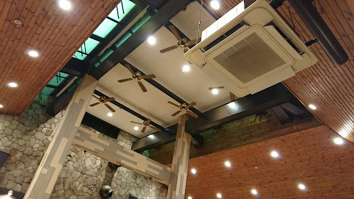 Read more天井が高く、天井にファンが回っているのはアメリカっぽい感じですね。とはいえ、アメリカでこんなに天井が高いレストランに行ったことはない気がしますが。 サーロイン+ハンバーグのランチセット(ライス付き)とサラダバーを頼みました。ステーキの焼き加減は、届けてもらったときはミディアムレアくらい、熱い鉄板に乗せられているので次第にミディアムくらいになっていきます。まあ、肉は脂身が多いですが、ハンバーグ含めてそれなりかと思います。 が、個人的にはサラダバーが良かったです。野菜好きなので、バリエーションのあるサラダを食べ放題というのは大変良かったです。オクラ、大根、ワカメなど。レタスがもう少し新鮮で大きく、海藻のバリエーションがあるとなおよかったですが、これで+220円とは、驚きの十分満足できる内容でした。 あえて言えば、ポーターハウスがあるといいなあ(価格を考えると無理か)というのと、シーザーサラダ、マッシュポテトやオニオングラタンスープ、クラムチャウダーとかあるといいかと思いました。USでステーキ食べるときの定番ですね。もう一つはライスではなくパン(できればライ麦とか黒パンとか)に変えられるとよいです。パン、スープのコーナーもあったようなので、そちらも次回はトライしてみたいです。