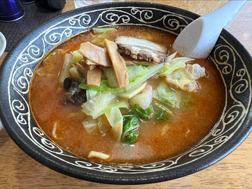 私は辛しみそタンメンと餃子を注文。 辛しみそタンメンはそんなに辛くはない。みその甘みが残るスープ。野菜はたっぷりでシャキシャキしていた。麺はもっちり中太縮れ麺、みそに絡まって美味い。福島県の麺って本当美味しい。 餃子はタネに野菜が多く旨味がすごい。皮がもっちりしていて食べ応えがあった。これで440円はコスパ良過ぎです!
