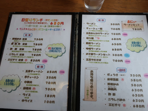 金曜日の夜7時半頃に訪問しました。 店は夜だから看板が光っていて分かりましたが、日中は見過ごしてしまうかもしれませんね。 駐車場は奥にも広いのですが、混雑時間帯は出入りの車で注意が必要です。 店内にはいると、この時間帯で疲れていると思いますが元気に応対していただけまし た。すばらしい。 店内は一人でも座れるように真ん中を仕切られた長テーブルと小上がりに座敷テーブル3台ほどがあり、そこに案内されました。 店内は清潔で中華料理店独特のべた付きもなく快適です。 肝心の注文は味噌担々麺と半チャーハン、娘が鶏のチリソース定食で餃子をシェア。 味噌担々麺は味噌と唄っているだけ有り、味噌の風味と胡麻がマッチして美味しい。 縮れ麺にスープが絡んであっという間に完食。気持ちもう少し具が多いと最高。 鶏のチリソース定食は海老より鶏肉の方が美味しいんじゃないかと思うほどマッチしており、掛かっている餡をご飯にかけて完食していました。 餃子もパリパリの皮とジューシーな餡でこれまた旨い。 私が須賀川に来る時間帯が20時前後になるので開いているだけで有り難いのですが、旨い...
