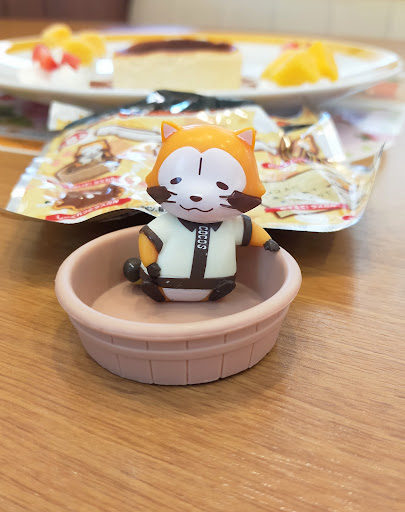 ●『ラスカルバスクチーズケーキ』¥590 ココアパウダーでラスカルの絵柄が書いてあり COCO'Sオリジナルマグネット付き バスクチーズケーキはフツーチーズケーキ味