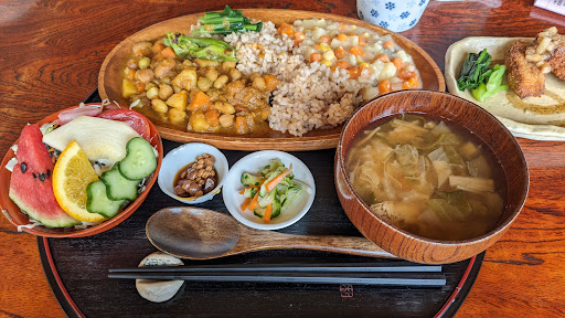 This place has a lovely super relaxed atmosphere and great service. Healthy, filling, freshly made, good quality food is on the menu. The servings are generous. Most of the tables are Japanese style with zabuton on the floor, and three or four tables are western style. Dead animals are not served. If you need to eat animals, you'll need to go elsewhere. Come if you want delicious food that gives you heaps of energy, this...