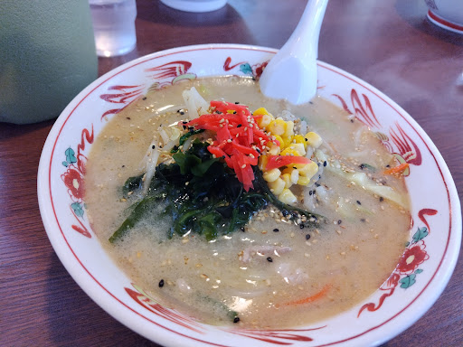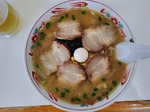 Read more昔からあるラーメン屋さんです。 オススメはやはりごまラーメンです!ごまペーストをスープに混ぜてるので濃厚な味わいと、追いごまをふりかけてあり、紅生姜がアクセントになっていてとても美味しいです😋麺は太めのちぢれ平麺です。 正直ごまラ一の一択で良いです。 餃子も昔はニンニク多めで少し辛い印象でしたが、久しぶりに食べに行ったら子供も食べられました。 小さい子供にはハーフラーメンもあり、サラダ付きメニューも多数ありました。 座敷は4名席で4卓ありますが、背中合わせで後ろの方に気を使う狭さなので、男性があぐらで2人並ぶには...
