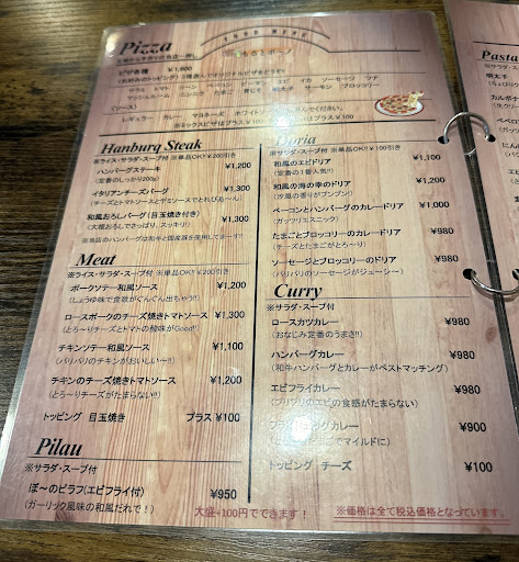 Read moreディナーで利用させていただきました。 須賀川へは出張で来ており、ホテルからお店までは徒歩5分程で着きました。 外からお店の中が見えなくなっているため、開けるのに少し勇気がいりますが、店内はアットホームな居心地の良い空間になっておりました。 店内の席はカウンターが数席、4人掛けテーブルが2席、お座敷が6か8?名席となっておりました。 注文は、お店へ行く前からずっとチーズハンバーグと決めていたため迷わず頼みました! 届いたチーズハンバーグは思っていたより大きく驚きましたが、お肉の味がしっかりした柔らかいハンバーグで、ソースとチーズがとても合い!食べる手が止まらずあっという間に完食していました。 ディナー時にセットで頼め、更にこの量でこのお値段はとてもコスパが良く、良心的なお店です! 次はピザかドリアかチキンかエビフライカレーか...どれも美味しそうで悩みます🤤 また...