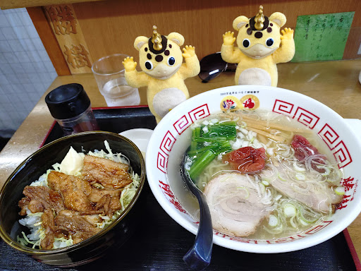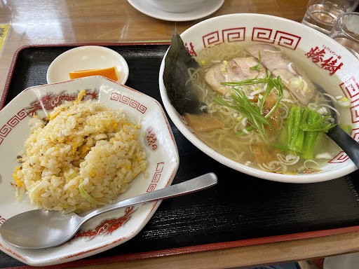 來到福島第三天 看完超人舞台劇 我當時一直以為舞台劇跟円谷英二博物館是同一個地方 結果不是 正愁不知道吃什麼 我就提議遊覽車經過的一家 謝謝拉麵 勝樹 我自己是很擔心 如果評價不好 吃到不好吃的老公會不開心 但他說沒關係 就去一探究竟 沒想到到了店內 開遊覽車的大哥也來吃 之後入座又看到好幾位須賀川市的長輩來吃