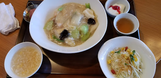 Read more今日はお天気も良く🎵少し遠出のツーリング🏍️を考えて、ランチのお店を探していると❗ 評価も良く❗写真見ただけでも食べてみたい‼️と決めました👀‼️ 初めて伺いました‼️😁 駐車場も広くて停めやすく❗ 外観も綺麗🎶オープンと同時に入店しました😊👍 主人は天津飯と決めていたようで💦私が迷ってると主人がランチメニューにすればの一言で決定‼️(笑)😁海の幸入り中華飯セット🎶