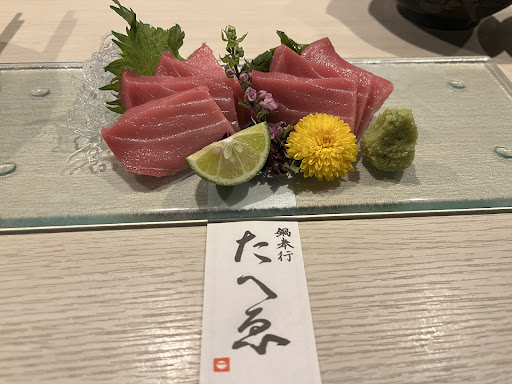 Read more初めて来店する『たへゑ』さんは、北海道帰りの私を満足させてくれたのです‼️ つい4、5日前まで北海道で海鮮を楽しんできたのですが、淡路島モンキーセンターの淡路ザルに逢いたくなり出かけるのでした。 淡路島の東海岸はワカメが育ち、海も綺麗です。 何故か無性に淡路島の海鮮を食べたくなったのでした。 初めて入店したのですが、とても綺麗で堅苦しく無い空間でした。 カウンターに座り頂いた一品は本鮪の中トロと解禁直後の淡路島のムラサキウニ、そして淡路産のトマトスライス。生ビール🍺に日本酒🍶を一杯いただきました。 本鮪の中トロは鮪本来の旨みがしっかりしていました。 驚いたのは淡路島のウニの味でした。 北海道のバフンウニの美味しさをしっている私は、ムラサキウニには期待していませんでした。しかし裏切られました。淡路島のムラサキウニは濃厚で、味の余韻が口いっぱいに広がるのでした。もしかしたらムラサキウニの中でも日本一の味わいかもしれない‼️ 綺麗な海で育ったワカメをたべるウニの味は最高でした!勿論生ウニでミョウバンの苦味はまったくありませんでした。 トマト🍅も、久しぶりにトマトの香りを感じるものでした。 当たりの🎯お店でした。 淡路島愛❤️に溢れるオーナーとの会話も楽しかったです♪ また行きたいお店に加わりました。 次回は鍋料理🍲を...