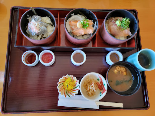 Read moreサクラマスがのった、海の三色丼を食べに訪れました。80近くの母と2人で入店しましが、注文が慣れないタッチパネルで、ミニそばと温泉たまごを追加で選んだ後、母の注文をしたところ、注文数を確認せずに送信した為、親子2人で丼ぶりを3つ注文するハメに🥹スタッフの方は、注文後の取り消しが出来ないと言い放たれ、生物の為、残ったモノも持ち帰りも出来ないと言われ、サクラマスを味わうのも忘れるくらい怒り心頭で、自分達で食べれる量を食べてきました。こちらが、注文内容を確認しなかったのは悪いとおもいますが、厨房でも、年配の女性2人組で、作る前に、この注文で大丈夫なのか確認してもらいたかったです。 丼ぶりのご飯も、硬...