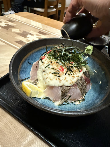 Read more南淡町の方面から明石大橋の方に抜けるのに洲本や津名は国道が混んでいるので西側の五色ルートで帰る事にしました。 ちょうどお昼時で五色ルートはお店が少ないのでどうしようかな?と迷っていたところです。 以前やや南に魚魚やすという海鮮丼のお店に訪れたことがありましたが完全に観光客向けで高価でとても地元民が来るようなお店に見えませんでした。 淡路島地場の魚介類の値段群からするとその魚魚やすは完全に外れていた記憶があったので意地でも他のお店を探そうと沿道を注意深く走っていたところ見つけたお店がこちらでした。 全くの前知識ありませんが地元民が多く訪れておりこういうお店は間違いないと確信しましたがいざ入店して食べてみて「間違いないお店」だと確認出来ました! かけうどんから高いものは2000円を超えるような料理もありオールラウンダーなお店です。 ちょっと贅沢に天丼を注文しましたが、大きめなエビ2本、イカ天、サツマイモ天、大きめのホタテ貝天、鰆天、インゲンと超具だくさん! 母は鰆のたたき丼のようなメニューを注文しておりましたがこちらも鰆の切り身が沢山のっておりました! どちらもとても美味しかったです。 特に鰆は当然ながら新鮮で、バーナーであぶっていることによって生ですが暖かくなって薫り高くなっているところとろろと一緒に頂くのはなかななか乙な食べ方でした。 他しらす丼など人気メニューは沢山ありました。 今後もこちらの...