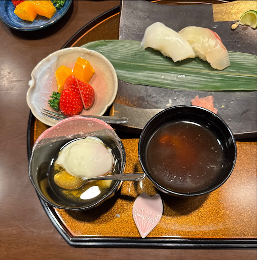 Just spend the time before taking bus to Osaka. We looked into google and find most of the restaurants take rest on Tuesday. My wife picked this restaurant and for convenience. When arrived the restaurant just opened and with no English menu. We don’t have much expectation and just pray for the food taste fair and picked 3 different lunch sets. Normal lunch, Superior lunch and Banquet lunch. But when we eat the lunch, it completely surprised us. All seafood sushi is so fresh, squid and octopus serve with thick cut but not hard to chew. Eel sushi taste good with sauce / fire burnt. Fish sushi, like snapper, toro and hamachi, freshness is even better than the Sumoto Hot Spring hotels one. Rice were just hold with a right squeeze and you won’t feel to tight or too loose. The tempura are deep fried with right temperature and the batter is thin but crispy. Red miso soup boil with mushroom and seaweed, tasty yummy but not salty. My family all likes the fruit plate, even the serve is small, but the orange taste very sweet and give refreshes to mouth feel. Highly recommend to the tourist would like to find a place to have sushi lunch. BTW, the restaurant owners (I guess is couple) both...