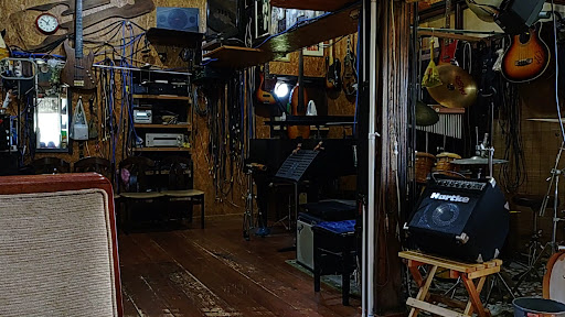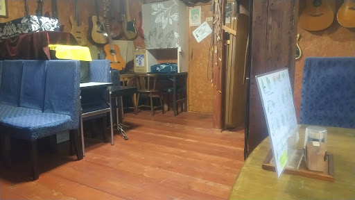 しかし素朴な外観とは裏腹に店内は結構ド派手。 ドラムやギター、ベースギター等多くの楽器が勢揃い。 更には珍しい馬頭琴まで壁に飾ってあってとても見ごたえのある店内でした。 ライブ会場としてこのお店を貸して下さるらしいし、更には刃研ぎまで行われているとか。 色々活動的ですね。