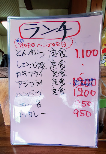 裾野の町はずれ、茶畑交番交差点の向こうに佇む、昼はランチで夜は地元衆愛着の居酒屋風情を醸す一軒。 とんかつが旨い。脂ののった熟成ロース肉を汎用油でじっくり揚げた懐かしいこの食堂とんかつは、身体を使ってしっかり働く男が好む大満足のひと皿である。 ハンバーグが旨い。店と同じく年期の入った黒鉄板が醸すこの煮焼き系体躯を甘口の旨味ソースがしっかりと包み込み繊細かつ豪快な傑作に押し上げる。でも良いオーブンがあって少し教われば家でもできるかもな、とも思えてしまう界隈にはほかにない力の抜けたご馳走である。 カキフライが旨い。見た目は小粒だが味は優秀な良い素材を使っている。カキらしいホッとするこの味は疲れた時にいい。もちろん冬季もので年中は無いが季節には月2回くらいは食べに来たい。 …ほかにも、この屋は旨いメニューが多い。 年期の入った店である。女将に訊いても正確な歴史は教えてくれないが、はじめに新品で入れたレジスター機が壊れてから何年も経っており、もうご主人・女将とともに廃業するまで買い替えないのだという。それもひとつの食堂の美学であろう。 永く続けて...