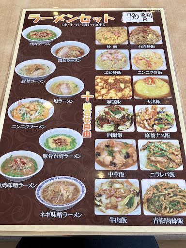 When we first walked in the smell of stale cigarettes hit us along with the smell of someone smoking. We sat down at a both, a worker dropped off a pitcher of water but no greeting. The menu has multiple pictures but nothing is in English. The set meals are the way to go because they are very inexpensive. The Taiwan Ramen was beef based soup not too tasty. The Shrimp Chili tasted very cheap. The liver and onions was okay nothing fancy. You get exactly what you pay for here, I am not sure if I will come back to try some other dishes. When you pay watch because they like to round up, our total was ¥1380 but the...