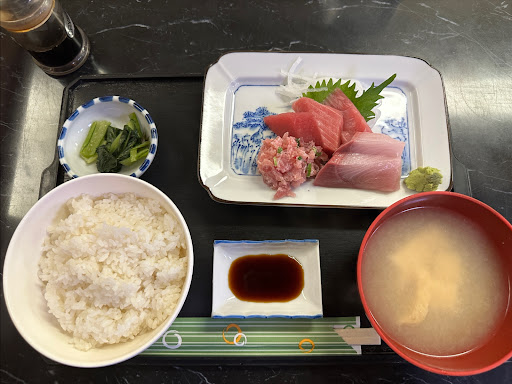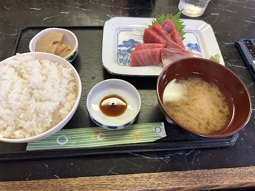 Read more今時こんなリーズナブルな飲食店はありません。 ランチが税込550円。ご飯お代わり無料。味噌汁お代わり50円。3回はリピートして利用させていただいてます。 刺身定食しか食べたことがありませんが、とても美味しく、臭みもありません。 これで黒字になっているのか心配になるくらいです。店内には地元の方が多く穴場スポットなのかな?駐車場も無料であり、黄色の枠に駐車して坂を下って歩いて店内に向かいます。そして、ピンク丸部分が店内の入り口です。 昼時に混むのは嫌なので、レビュー書くのを迷いましたがぜ...
