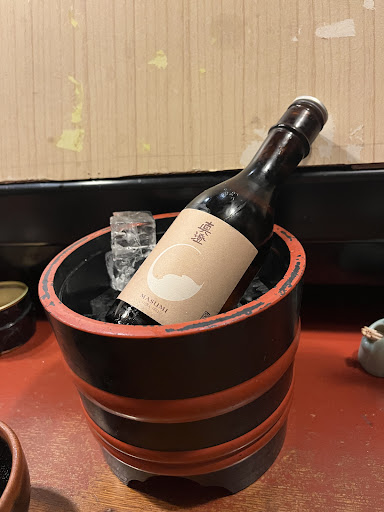 馬刺は初めから頼もうと決まっていました。 早速注文し、一緒に馬刺しに合う日本酒を聞きますと、5種類くらいの日本酒を提案いただき、その中から真澄をチョイス。 まもなく馬刺しも登場しました。