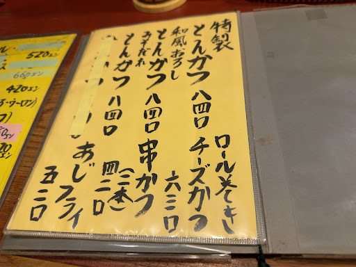 薄暗い店内は隠れ家的な雰囲気。 昔伺った際はおばあさんもいらっしゃいましたが今は店主さんがお一人で切り盛りされています。 カテゴリでは「とんかつ」で出ることが多いですがメニューはそれ以外の居酒屋系も充実。 炒めものに馬刺し、後は冷やものが多めかな。