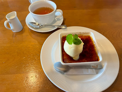 Read more諏訪の高島城の天守閣から堀を挟んで向かいにある可愛らしいお店です。 りんごのパイやタルトを期待して訪れましたが、季節外れで流石に無理でしたが、代わりにクレームブリュレを頂きました。 最高です!とても美味しい!表面のカラメルが厚めで少し苦味もあるしっかりとした味です。中のクリームも甘過ぎず凄くバランスが良いです。 少し出てくるまでに時間掛かるのはその場でバーナーで作ってくれているの?とは思ったりもしましたが(笑) 次は秋に訪れてりんご関係を頂こうと思います。