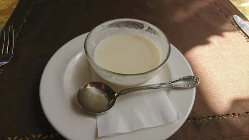 まずは、ジャガイモの冷製スープ(ビシソワーズ)。きめの細かいスープでした。 前日に私もビシソワーズを家で作りましたが、雲泥の差でおいしかったです。