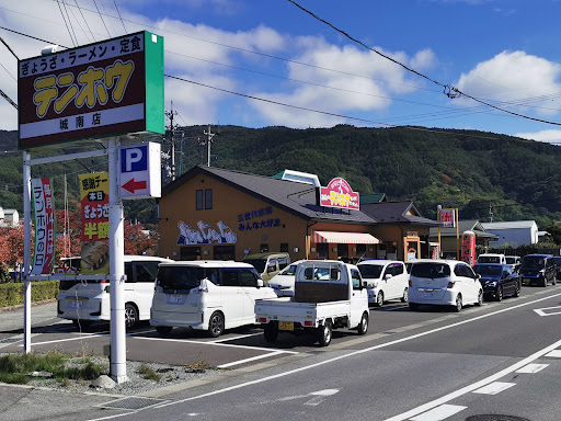 仕事のために諏訪市へ来てお昼ごはんをどこで食べようかとグーグルマップで現在地周辺を見てみると徒歩10分以内にテンホウ城南店があることがわかりテンホウ麺か辛くないタンタン麺を食べにおみへ向かいました。着いてみるとバンガロー風の小さいテンホウと新築のようなきれいな大型店のテンホウが並んで建っていました。それぞれに入り口がありどちらから入っても中でつながっているのかと思ったら別棟となっていました。バンガロー風の小さな店には「中華そば」が強調されていて店内も狭くお客さんも少なく空いていたので今回はバンガロー風の小さいテンホウに入りました。入ってみるとほんとに狭い店内でしたがいい雰囲気でした。来る前はテンホウ麺か辛くないタンタン麺のつもりでしたが暖簾に「中華そば」とあったので中華そばと半ライス、半熟卵のセットをお願いしたのですがお伺いした今日が偶然ぎょうざ半額デーだったのでついつい追加注文しちゃいました。運ばれてきました中華そばは思っていた以上に美味しくてびっくりしました。醤油ダレが強すぎずスープの旨味と相まってちょうどよいバランスの塩味と旨味が口いっぱいに広がりました。卓上のブラックペッパーをふりかけて味変してみるとスープの旨味にピリッと辛味が効いて旨味がいっそう引き立てられて美味しかったです。県内のテンホウ全店の中華そばがこんなに美味しいのか食べ比べていないのでわかりませんがこちらの諏訪城南店の中華そばは私にはとても美味しく感じました。ごち...
