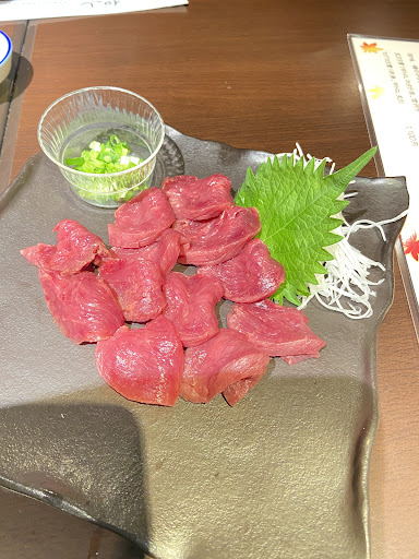 信州サーモンは美味しかった。 馬刺しも美味しかった。なので産地をが聞いたら、(私達は馬刺しが大好きで、青森県五戸の尾形から買っているので)国産では無い、国産ならこんな値段じゃ出せない、との事。ふーん、やっぱりね、ここのお店は質よりコストで決めるんだ。今まで食べた事がない柔らかい馬刺しだったんだけど…。私なら国産じゃなくても美味しい馬刺しがあるんですよ〜って言うけどねー!