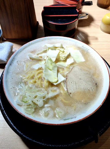 Read more【R5.09.10追記】 注文はタブレット端末で、支払いはセルフレジになっていました。 ショウナンラーメンを食すこと3度めですが、今回は以前よりスープが濃厚に、塩味が強くなった印象がしました。「意外とライト」な味わいが特徴だと思っていましたが、これはこれで好きな味です。 半カレー丼(352円)も注文しましたが、サイドメニューらしからぬ量、スパイスの効いた味(辛味は強くないです)に満足です。