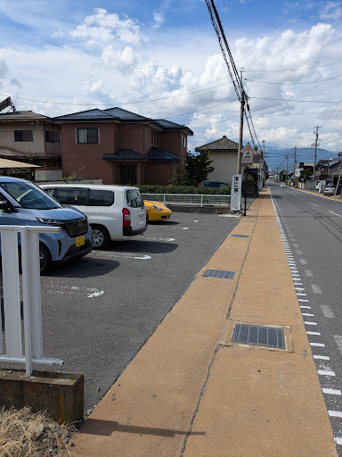 駐車場は店沿いを下った所にあり、駐車場の看板も出ている。