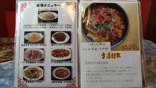 【R7.10.19再訪】 前回マーラータンを食しましたが、今回も辛いもの食べたさに足を運び「満州特製水煮肉片定食」を注文しました。過去には牛丼チェーンの松屋で、似たメニューの「水煮牛肉」が販売されチェーン店らしからぬ激辛でSNSなどで話題になるなど知名度はそれなりにあると思います。 運ばれてきましたメニューは、真っ赤なスープ(ほぼ辣油)に沢山の具材が2、3人用の土鍋にたっぷりと盛られたボリュームで、果たして食べ切れるのかと圧倒されます。 味は、唐辛子と花椒の刺激に八角の香りで「中華料理を食べているんだなぁ」感が楽しいです。 その一方で味付けは前回食べたマーラータンと大差ないかな?と感じました。辛味は激辛好きには物足りないかな、それにしても絶対1人前の量じゃないな、と考えを巡らせながら食べ進め、気が付けば完食していました。 このメニュー、お値段はなんと1880円とこのお店の定食では最高値です。ですがマーラータン(ライス付き)が1380円ですので、「ボリュームがアップし、スープとサラダと小皿とデザートも付いてくる」ので付加価値を考えますとこの価格設定は妥当と言えます。