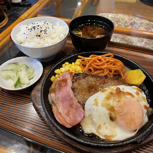ハンバーグは手作り‼️ 柔らかくてジューシー💕 ソースは別添えタイプです。 ソースは和風オニオン 照り焼き ポン酢 デミグラスから選択出来ます。 鉄板で提供されるからいつまでたっても熱々なのが嬉しい♥️ 定食にはご飯 味噌汁 漬物と付いてました。
