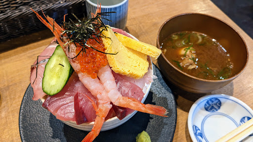 平日ランチで伺いました。 店内はそんなに混んでおらず、すぐ席に通されました。オーダーもすぐに通してもらえましたが、そこからが本当に長い。平日ランチでこれだけ時間がかかるようでは、サラリーマンには厳しいですね。厳しいといえば、いつの間にか1000円から1500円に価格改定があったようで、これにも驚きました。あら汁がつくようになったようですが、以前にあった、いくらを目の前で盛ってくれるパフォーマンスはなくなったようで残念です。結果、ネタが溢れることもなく、至って普通の海鮮丼です。やたらみっしりと盛られた酢飯が、高さのあるお茶碗にフチまでぎっしり。その上に平らに刺し身が盛られ、玉子焼き、キュウリ、甘エビ、ネギトロ?で立体感を出してます。いくらはます子でしょうか?粒が小さいです。ネタの鮮度も脂のりも特筆すべき点はありません。 アラ汁は海鮮丼に遅れること数分で届きましたが、完全に冷めていました。いい出汁が出ていたのに残念です。大ぶりの器に半分程度だったのも、物足りない感じでした。 店内は時間に余裕のある方が多いのか、食べ終わっても話に興じている方が多くみえました。気になったのは厨房に通じる奥の通路が目隠しもなく丸見えで、魚を手にぶら下げたままで喋る板前さんがずっと見えていたこと。その後そのまま調理されていました。衛生面に不安を感じます。 前回一人できて、良かったので人を案内してきましたが、非常に残念でした。 そういえば一度社内の飲み会でも利用しましたが、予約に対する返事がなく焦ったこともありました。 残念...