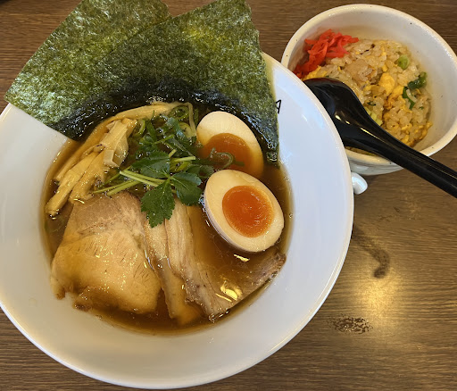 濃厚味噌とんこつに スパイスを加えたカレーラーメンは名物だが 定番は和風だしの醤油ラーメンらしい あまりカレーラーメンは惹かれないので 和風醤油極全部のせ1155円と セットの半チャーハン385円を注文。 税抜きのが大きく書かれていて 最初はあまり気にならなかったが 税込みにすると合計で1540円は 美味しくなかったら腹立たしくなる値段だ。