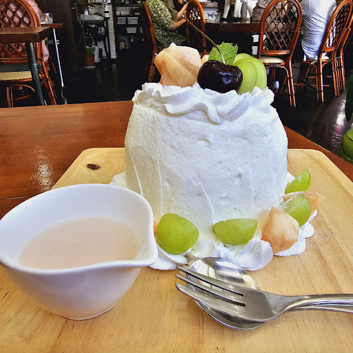 隣のテーブルはかき氷→サンドイッチの順番に料理提供があって、かき氷がシャバシャバになるくらい溶けてしまって気の毒でした。