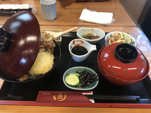 Read more鈴鹿市駅を線路沿いに走ると店舗があります。何故かGoogleナビで「居酒屋」と表示されましたが、投稿されている方の天麩羅が美味しそうで思い切って来店しました。駐車場は店舗敷地に3台分、踏切近くにも数台分あります。 平日のお昼で混んでいましたが、5分程待ったら空きました。店内はカウンター、テーブル席、お座敷があります。 メニューは天丼や天麩羅、単品などの他、お酒も充実しています。ランチメニューでお魚と天麩羅の定食がありましたが、やはり天麩羅定食を選びました。海老天2尾、イカ天、さつまいも、かぼちゃ、青葉の天麩羅、赤だし、小鉢、お漬物、サラダ、ミニサイズの揚げ出し豆腐、ご飯がセットとなっていましたが季節によって天麩羅は変わるかもしれません。天麩羅はサクサクで天汁は濃過ぎず優しい出汁。小鉢の青菜の胡麻和えも一口揚げ出し豆腐もお味噌汁も本当に美味しかったです。ご飯がもう少し食べたくなる程、ご飯が進みました! お勘定の際に店主も他の店員さんも何度もありがとうございました、と明るく言って下さり、素敵なお店でした! 行けばまた食べに行きたくなる、そんなお店が鈴鹿では久...