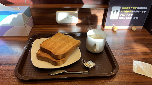 ドリンクバーはかなり種類が多く、お味噌汁や中華他のスープ類やソフトクリームもあります。 また朝はトーストが食べ放題でした。 生の食パンをトースターで焼いて食べるのですが、トースターは2つだけですので混雑時はトースター待ちが発生する可能性もあります。 食事メニューが豊富で、F1開催中でも意図して注文を止めたりせず問題なく注文が出来ました。 お値段は他に比べるとちょこっと高めかも知れませんが何気に美味しそうでした。 お酒もビールとチューハイでしたがありました…が、店外で買った方が安いです…。 なお料理等の注文の他店舗とのやり取りも含め全てブースのPCで行えます。