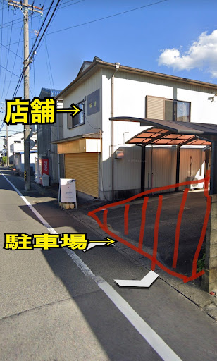 道路付近に立て看板はありますが、駐車場の奥(正面)が民家なので少しわかりにくいかもしれません。 1階のお店はシャッターが降りています。