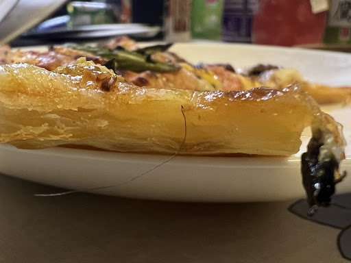 ピザを持ち上げたら真ん中にしか具が乗っていないので具がほぼ落ちて無くなる。(写真2枚目) 1ピースの半分が生地のみの部分があり、耳を持って食べると最後は生地だけで口の中がいっぱいになってかなり不快。