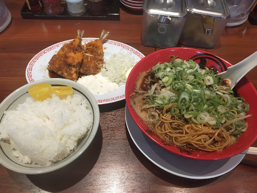 Read more5年ほど前に来店し、もぅ来なくていいかなぁ…と思って、ずっと来店していなかったが、近くを通り久々に来店してみた。 うーん、誰もいない… ちょい、不安になったが時間的なものだろうと思い、店内へ。 タッチパネルにて何を食べようか悩む。 醤油ラーメンが2種類あるので、昼飯抜きだったので、値段の高い方のラーメンをアジフライ定食(1,155円)にしてみた。 ラーメン🍜とアジフライとゴハン🍚到着 まずは、ラーメンのスープを…ぬるい…。 下からかき回してみたが、トッピングのモヤシが熱くないからなのか、ラーメン全体がぬるいんです…残念★−1 味変(まずは唐辛子を追加)しながら、食べ進める。 途中で、ニンニク→胡椒と追加しながら食べていく。 ラーメンの味自体は好みの問題なので、濃い醤油味とだけ伝えておきます。 アジフライ(2枚付き)は小さいながらも、美味しかったですよ。 タルタルソースで1枚、もう1つはソースをタプタプに付けていただきました。 個人的には來◯亭のアジフライより美味しかったと思います。★+1