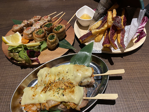 お酒や飲み物の種類はまずまずだと思いました。飲み物は注文からかなり早く提供してもらえました。 食事ですが、サラダからご飯ものまでお洒落なものが多かったです! タブレットで注文するのですが、串が有名と聞いてササミや肉巻きなど色々と注文しました。ですが、2本からしか注文できないのに1本ずつしか注文できなくて、システムがわかりにくかったです。