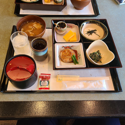 夕朝食付きプランで通常、ホテルや旅館に連泊すると2泊目以降は感謝の意味を含め多少のグレードアップするものだが、こちらのグリーンパーク直営レストランは手を抜きグレードを下げてくる 店長が二日目の明日の料理変更を提案を心地良く受け入れたが、生姜焼き定食と唐揚げ定食という 翌日、どんな生姜焼きと唐揚げ定食が出てくるのだろうと楽しみに夕食会場へ 料理の品数が減ってご飯と味噌汁漬物などは前日と一緒だが松花堂御膳がただの生姜焼きと唐揚げに その辺の定食屋さん料理に様変わり