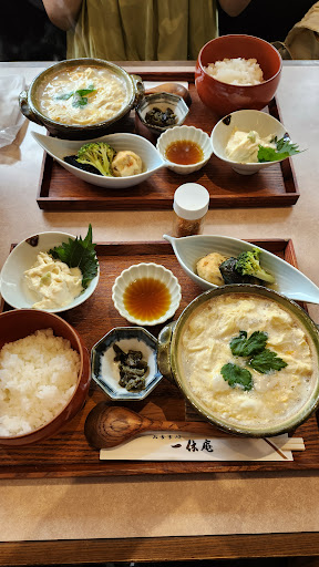 多賀大社に行ったら必ず食べて欲しいくらいの美味しさです。豆腐と湯葉がメインなのですが、それらが好きな人には心からお勧めします。また「湯葉はそんなに美味しいと思わない」とか「湯葉を食べたことがない」という人にもぜひ一度試して頂きたい美味しさです。私は豆腐好きですが、湯葉は「まあ美味しく頂けるかな?」レベルの食べ物だと認識していました。しかしこの店はレベルが違います。今まで食べた中で群を抜いて美味しい湯葉でした。この湯葉なら毎日でも食べたいくらいです。豆腐もただただ柔らかいだけのものもありますが、ここのはコクと弾力がありながらふんわりと柔らかい。湯葉は臭みやクセもなく、歯応えと柔らかさ、そして甘味と味わいがある。がんもどきなどは全く好きではなかったのですが、これも毎日食べたくなるほど美味しかったです。また多賀大社を訪れることがあれば必ず寄りたい店です。★は10くらいつけたいのですが、5しかつけられないのが残念。接客もすばらしく、平日とはいえ行列ができていないのが驚くほどです(こちらは助かるのですが)。湯葉なので値段は少し張りますが、旨さ、満腹感、サービスからすると価格以上の価値を感じます。どうせなら変にケチらず竹か梅のセットを頼むことを強くお勧めします。豆乳もクセや生臭さが全くなく、優しい甘味で飲みやすい、その他の品もどれを食べても相当な美味しさでした。豆腐料理で感動したければこ...