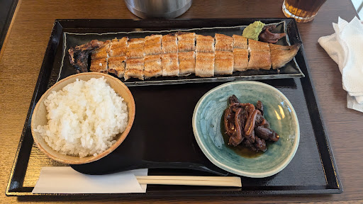Read more☀️二色鰻重¥3900- 参道のお土産や飲食店街のはずれにある鰻屋さん 注文が入ってから、串入れをし、焼きに入る。 焼きは、勿論、炭焼です。 じっくり、遠火の強火で焼かれたうなぎは、皮、、パリッッ。。中はしっっとり。。 焼きはパーフェクトの100点満点❗️ 米もバラっと炊き上げられ.タレとの絡み加減も丁度いいです。 白焼の塩加減もいい塩梅の100点満点❗️ タレ焼きとタレ焼きの2色鰻重は、かなりお値打ちかと、、 養殖うなぎ?か、独特の、、淡白な脂が口の中にうっすら張り付く様に残るのが、残念。1週間くらい井戸水でおくといいのになあ?なんて、、 今年で3年目に入ったばかりだそう、、 観光客より、地元の方々が根付いているいいお店。。お多賀さん詣の後に寄りたいお店が出...