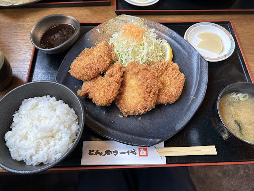 Read more国道45号線を塩釜・松島方向に行くと、臨海鉄道の高架を過ぎて、しばらく行くと、左に看板見えるので、左折、10台程の駐車場がある。少し狭いので出入りする車との離合に注意が必要、また、袋小路なので、切り返しも注意。中に入ると正面にカウンター手前に4席テーブルが3つ程、奥に小上がりの座敷テーブルが4つと4席テーブルが2つあり、ランチタイムは賑わっている。ディナータイムも休みは入れ替わり立ち替わりに入る位評判だ。この日頂いたのは、吟上ロースカツ定食でニンジンとキャベツのサラダ、ワカメ味噌汁、お新香、そして特製ワイン入りソース(アルコールは飛んでいる。)そしてご飯、カツは、外はカリっと、中は結構あっさりとしていたが、肉汁は十分に出ており、歯応えがある肉だった。連れが吟上ヒレだったので、そちらは柔らかく食べやすかった。ボリュームは200gで十分あり、女性一人では、食べきれないかも。1900円、他にも一代カツや味噌ロースステーキ、ハンバーグ、カレー、エビフライとメニューは豊富。迷ってしまうお客さ...