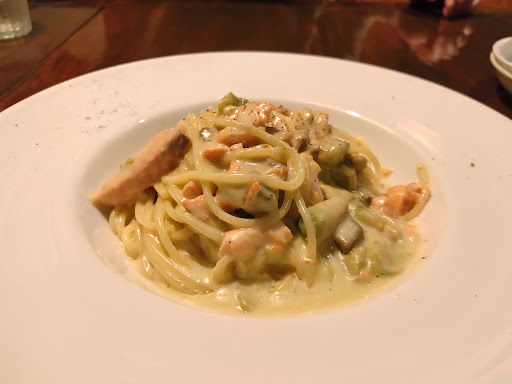 平日の夜に伺いました。 美味しくて、安くて、リラックスして食事が楽しめる良いお店だと思います。 コースでは無く、好みのパスタをオーダーしました。 アボカドとサーモンのクリームパスタと、ローマ風カルボナーラを。 アツアツで供されまして、どちらも大変美味しかったです。