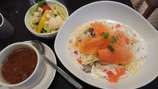 Read more何回か利用したことがあって、平日の夕方に店内でコーヒーでも飲もうかと久しぶりに訪問 ガッカリしました 店内に先客客は一人もおらず、右側のカフェスペース(?)も暗い雰囲気 入り口近くに男性のスタッフが立っていましたが「いらっしゃいませ」と言うものの、こっちを見もしない 奥にもスタッフが2名いらっしゃいましたが、おしゃべりに夢中で気づいてるのか気づいていないのか… その時点でコーヒーを飲むことはやめました いいサービスが期待できそうにないと思ったからです そのまま踵をかえすのもら気が引けたので、左側のパンコーナーを見やるとタイムサービスでパンが3つで500円 それを買って帰ればいいや、と トレーとトングが置いてあって、でもパンはどれもビニールに包まれている 直接手にとっていいのかわからず、入り口にいたスタッフに声をかけたところ、「ああ、よろしいですよ」と上からな発言 ついでに、よろしいです、というのは日本語として間違っています その際の受け答えは、結構です、が正解ですよね イラっとしてレシートは要らないと突っぱねた私もおとなげなかったですが、案の定「ありがとうございます」のひとこともなかったです パンはまあまあでしたが、もう気分が悪いので行かないです 以前何度か利用した時はこんな接客...
