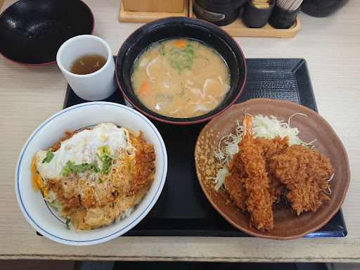 Read moreチェーン店の評価はあまりしないのですが、今回は目的のメニューがあったので、土曜日の昼間に初訪問です! 前から気になっていた王道とん汁定食プラス単品でエビフライ1本追加で注文です。 大盛にしようか悩みましたが、多過ぎて食べきれないと困ると思い、遠慮してエビフライだけ追加しました。笑 いざ届いて見てみると、そんなに多くなかった…。もっとボリューミーなのを想像してたのに…やっぱり大盛にすればよかった~。 それに今だけ150円引きですが、定価だったらあんまりコスパも良くないかもしれません。 トンカツとカツ丼が一緒に食べれるのは、初めての経験なので良かったのですが、トンカツには白米が必須でした…...